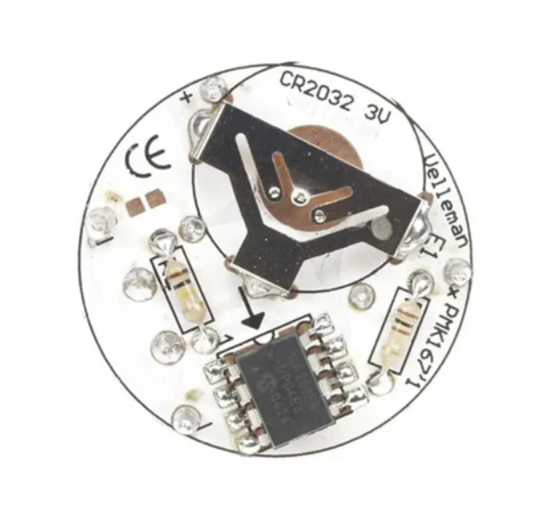 The Velleman Flickering Light Electronic Candle Soldering Kit has three different operating modes. There are three light modes: flickering light like a real candle flame, steady flame light, and fade-in and fade-out light.