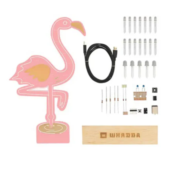 • Whadda Flamingo XL 납땜 키트(WSXL104)는 특수 확산 효과가 있는 장식용 RGB LED를 탑재하고 있습니다.