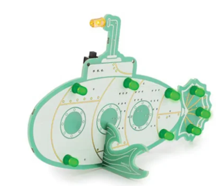 Retro designed PCB shaped to resemble a vintage submarine