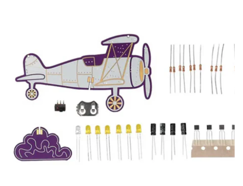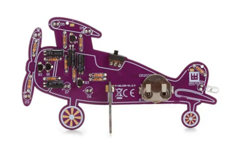 The Whadda Retro Biplane Educational Soldering Kit (WSL225) is an educational DIY project that requires soldering. Soldering is a technique used to connect electronic components. Soldering this kit is easy and fun, and you will learn more about electronics in the process. When you are finished, the LEDs on the kit will light up and you will have a neat little tool.