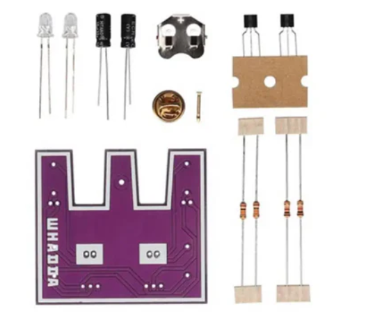 The white LEDs resembling Whaddy's eyes will blink one by one. You can also solder pins so that you can attach Whaddy to your clothing, bag, etc.