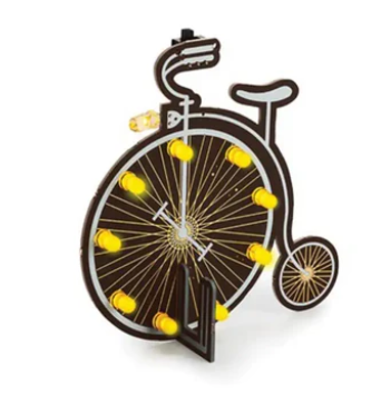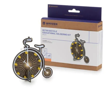 The Whadda Vintage Bicycle Educational Soldering Kit (WSL224) is an educational DIY project that requires soldering. Soldering is a technique used to connect electronic components. Soldering this kit is easy and fun, and you will learn more about electronics in the process. When you are finished, the LEDs on the kit will light up, and you will have a neat little gadget.